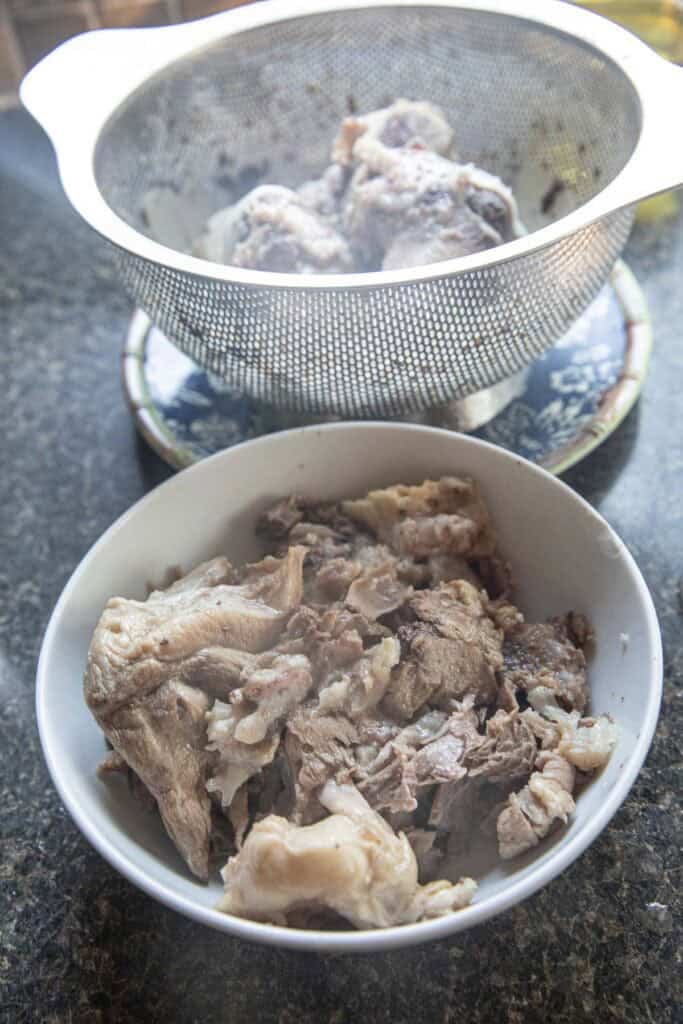 - Save the meat. Shred the tender meat from the bones and set it aside — it’s perfect for soups, salads, or just enjoying on its own with Thai green seafood dipping sauce, Trust me, that combo is so good.