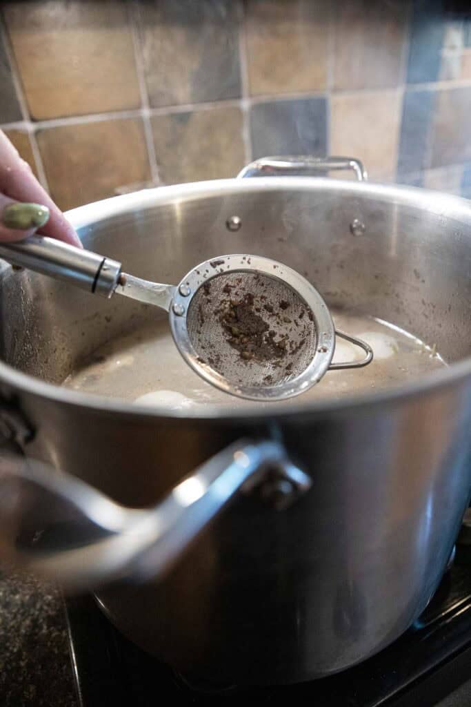 - Skim early. Remove foam in the first hour for a clear, clean broth.